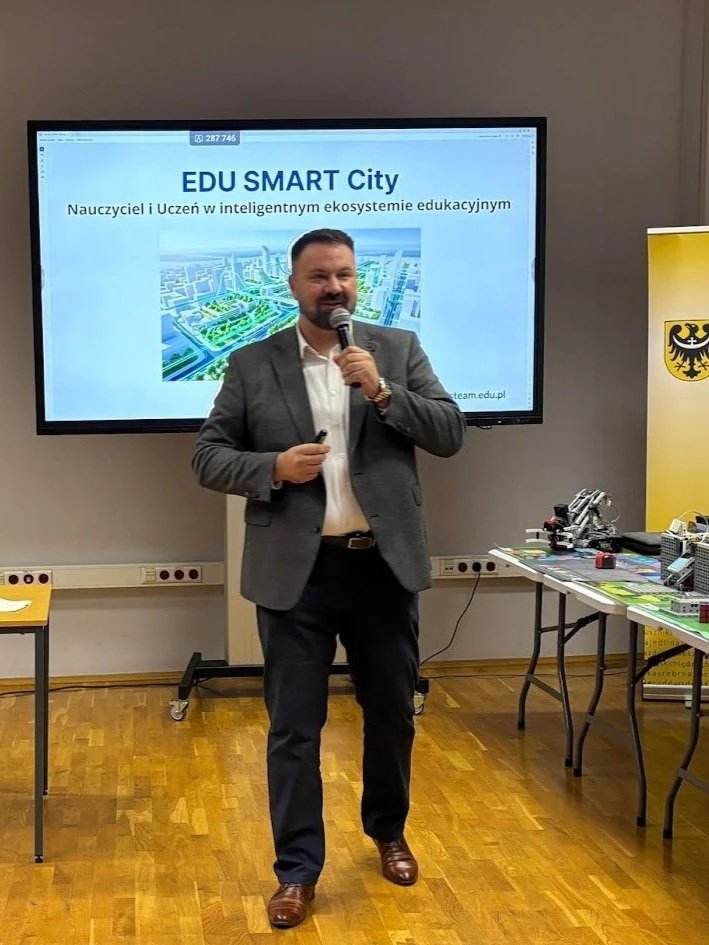 W gronie ekspertów nie zabrakło naszej reprezentacji. Krzysztof Kaszuba wygłosił prelekcję pt. „EDU SMART City – nauczyciel i uczeń w inteligentnym ekosystemie edukacyjnym”. W swoim wystąpieniu przybliżył koncepcję nowoczesnego środowiska uczenia się, w którym technologia STEAM i sztuczna inteligencja wspierają zarówno rozwój ucznia, jak i warsztat nauczyciela.